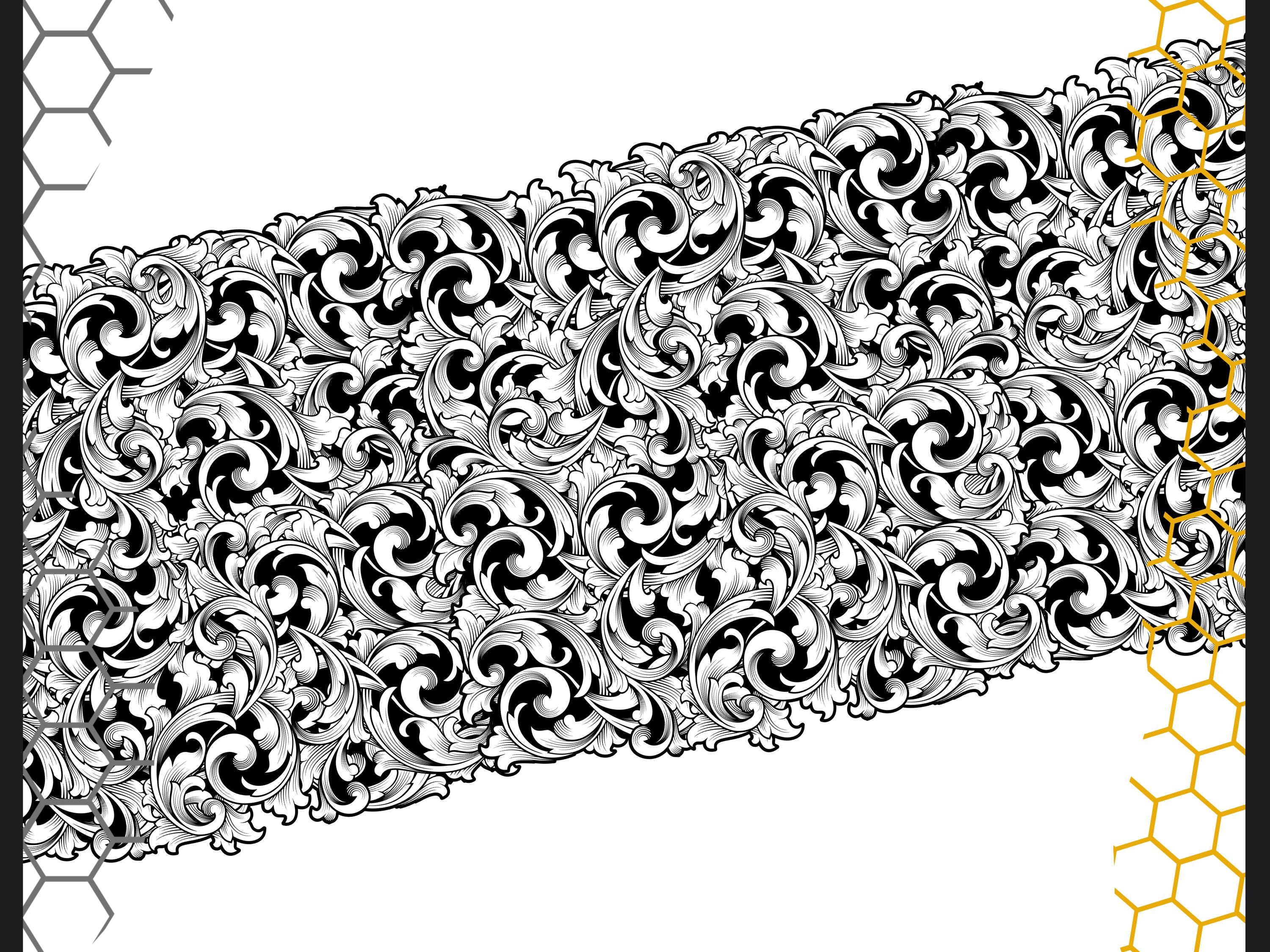 Scroll Pattern 3x Wide SVG | Geometric Patterns SVG File | Detailed Patterns | Scroll Design | Stippling Patterns | Digital Download | Svg